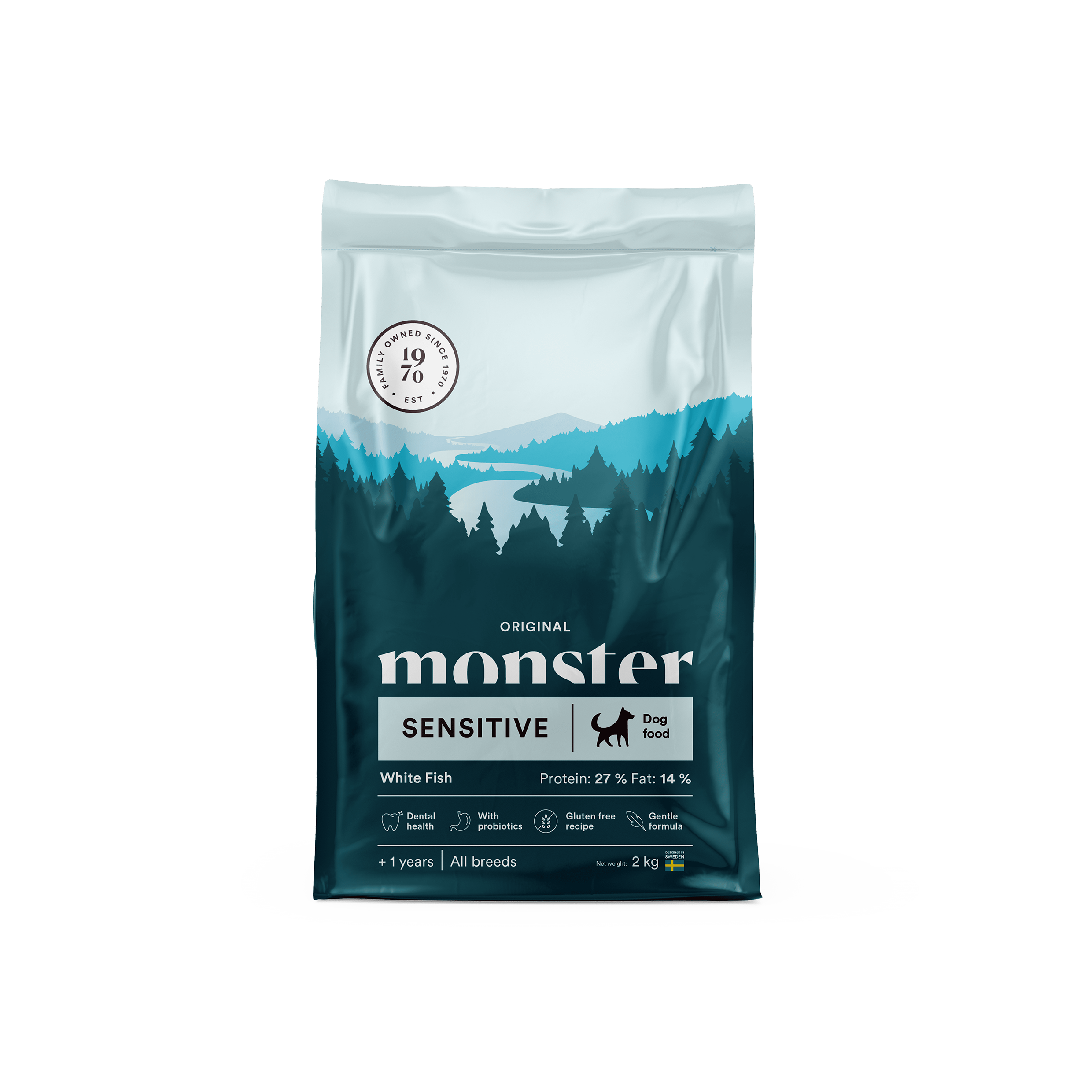 Siika (21%), siikajauho (21%), kaura, bataatit, perunahiutaleet, kalaöljy (6,8%), kuivatut sokerijuurikaskuidut (2,4%), hydrolysoitu siikaproteiini (2%), auringonkukkaöljy (1%), mineraalit (natriumhexameta-fosfaatin kanssa* 0,32 %), kuivattu oluthiiva, pellavansiemenet, frukto-oligosakkaridit (2500 mg/kg), merilevä, kikherneet, omena, porkkana, tomaatti, yucca schidigera, sinimailas, ruusunmarja, calendula, eurooppalainen mustikka, puolukka, kaneli, kamomilla, nokkonen, anis, rohtosarviapila, piparminttu, karpalo, mustikka, spirulina, appelsiini, päärynä, mulperinmarja, persilja. *mineraali hammaskiven vähentämiseksi.
