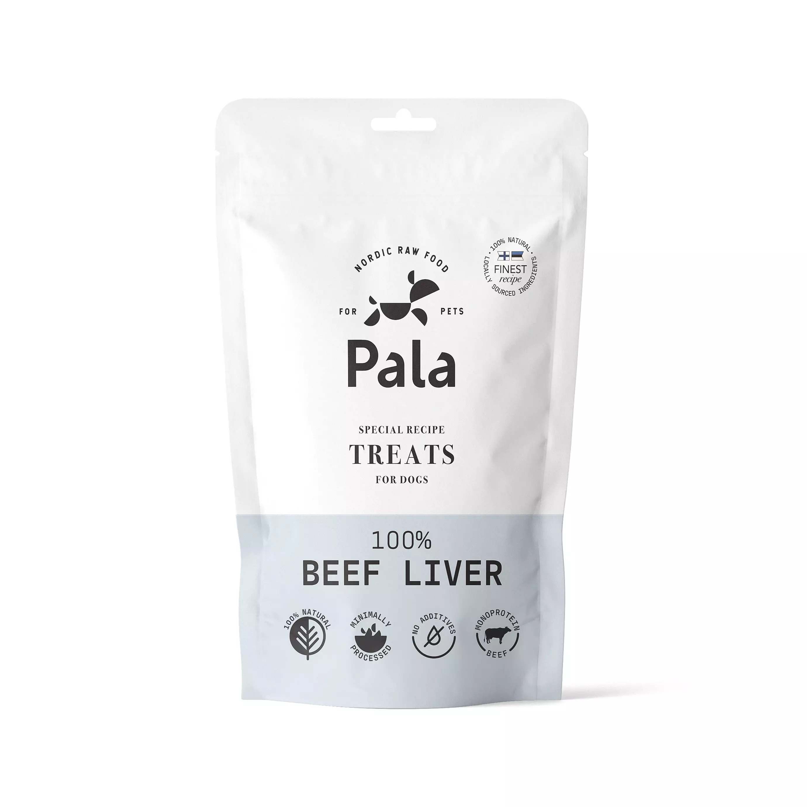 Pala Naudanmaksa on 100 % ilmakuivattua naudan maksaa – ravinnerikas ja helposti sulava herkku, joka tukee koirien ja kissojen ruoansulatusta, vastustuskykyä, lihaksistoa, hermostoa ja luustoa. Maksa sisältää runsaasti rautaa, sinkkiä, fosforia, A-, B- ja D-vitamiineja, foolihappoa sekä välttämättömiä rasvahappoja. Valmistettu ilman lisä- tai täyteaineita, hellävaraisesti ilmakuivaamalla matalassa lämpötilassa, jotta ravintoaineet ja maku säilyvät parhaimmillaan. Rapeat palat on helppo murtaa sopiviksi koulutukseen tai hemmotteluun.